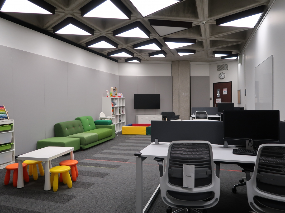 This space is open to UofT students, faculty, visiting scholars, and staff who bring their children (12 years old or under) to Robarts Library.